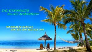 ΘΑ ΕΙΜΑΣΤΕ ΚΛΕΙΣΤΑ 12/08/2017 – 21/08/2017